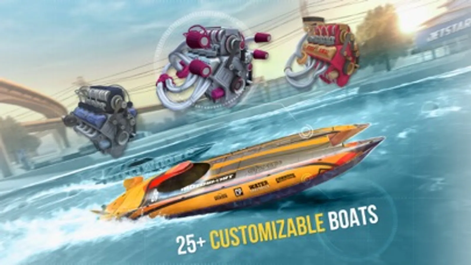 Pick and tune to perfection one of the 25+ powerboats from 6 unique boat classes: hovercraft, classic, offshore, catamaran, jetski and hydroplane. Customize your boat by tuning its appearance and slap on some decals if you want to! Find the optimal tune for your boat with dozens of performance parts – from fuel filters to gearboxes! You can also increase your engine's power, upgrade your clutch, body, nitrous, and more – these will all have a definite impact on your boat's performance.