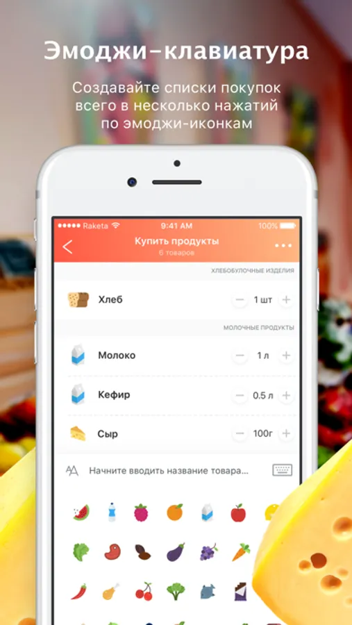 • Эмоджи-клавиатура. Теперь добавить позицию в список стало также просто, как отправить смайлик в чат. :)