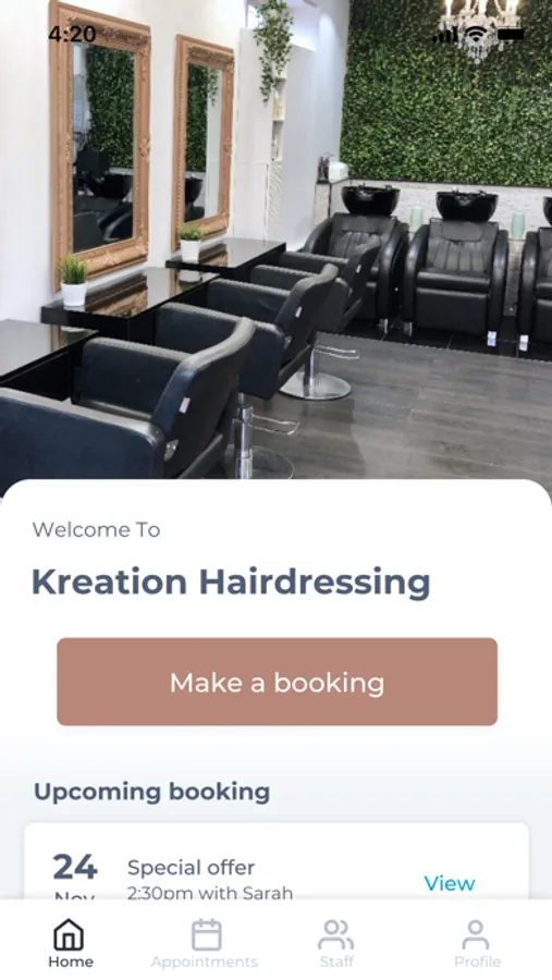 The Kreation Hairdressing app makes booking your appointments and managing your loyalty points even easier. You're just a few taps away from feeling good and looking great!