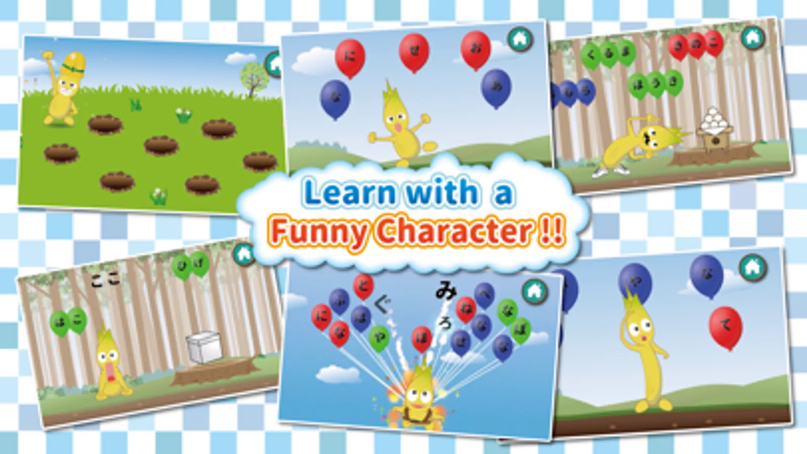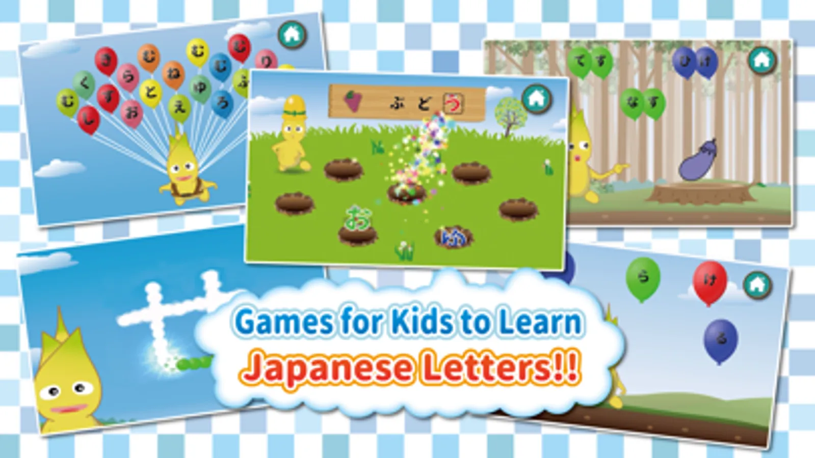 A simple free game that lets your kids learn the connection between the sound and the appearance of Japanese letters. You can turn on/off each Hiragana letters if you want them to learn specific letters.
