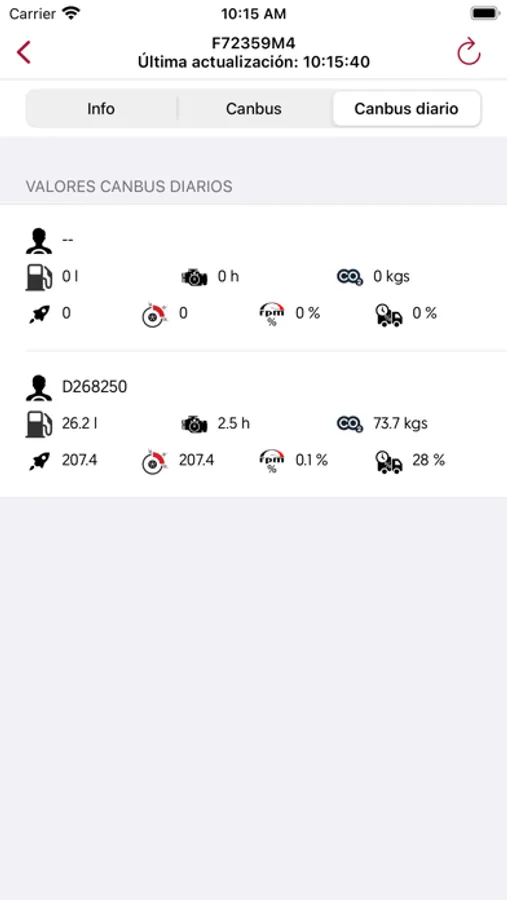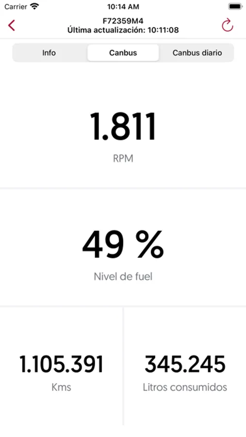 - Conocer el estado detallado de la telemetría del vehículo: kilómetros realizados, nivel de gasoil restante en el depósito, velocidad del vehículo, estado de la señal de contacto, localización del vehículo, fecha y hora de la última posición, temperaturas de la mercancía, etc