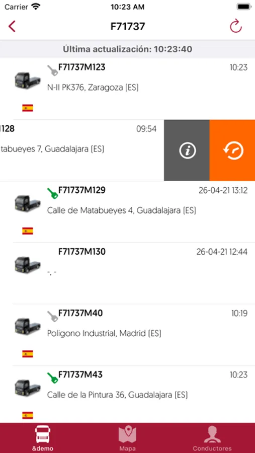 - Conocer la posición de los vehículos en tiempo real, así como el estado de la señal de contacto y la hora de la última comunicación