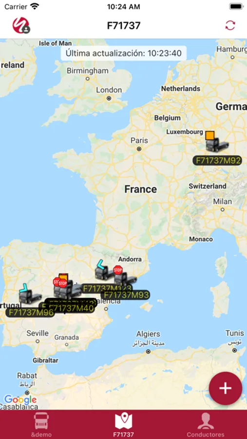 - Visualizar sobre el mapa la posición de un vehículo o de toda la flota