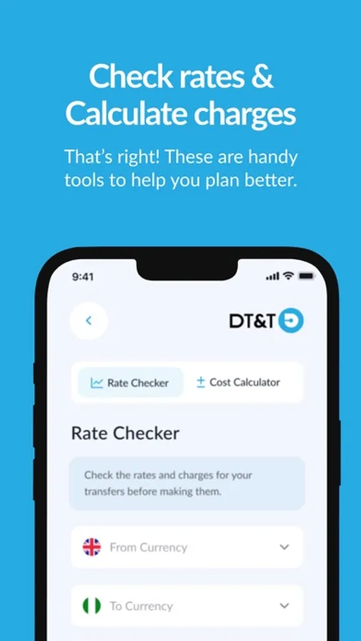 With DT & T’s mobile app, you can send money worldwide, track transactions, estimate transfer fees for online transactions, manage your account, and much more!