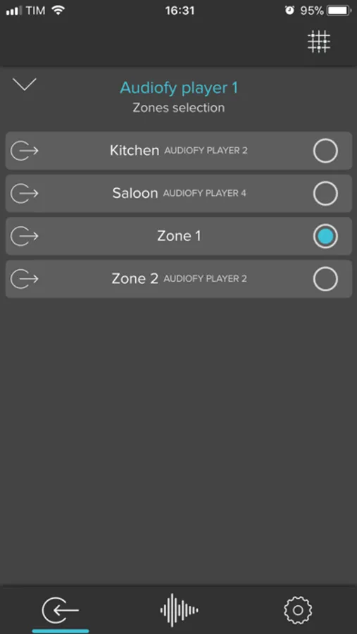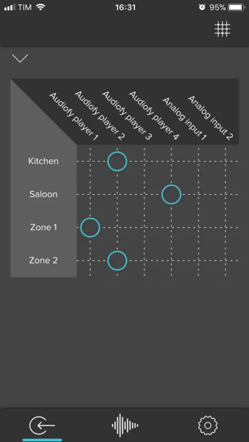 Through this app, the final user decides the routing of the audio sources and has a complete control over his music listening experience. The internal players are controlled directly from the app, the music library provided by a NAS or USB stick can be browsed with a simple menu.
