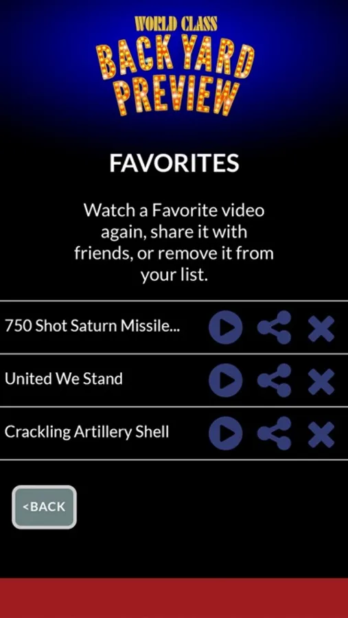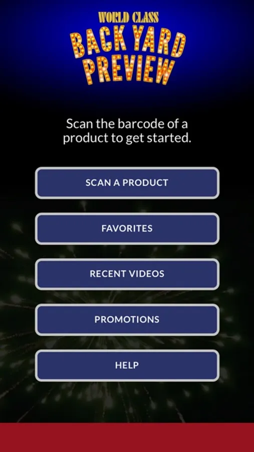 The World-Class Fireworks Back Yard Preview app lets you preview your favorite fireworks from your screen before you buy – any time you want. Just scan a World-Class fireworks product in any store that carries them and a hi-def product demonstration video will play. You can even save videos as favorites for later or share with friends!
