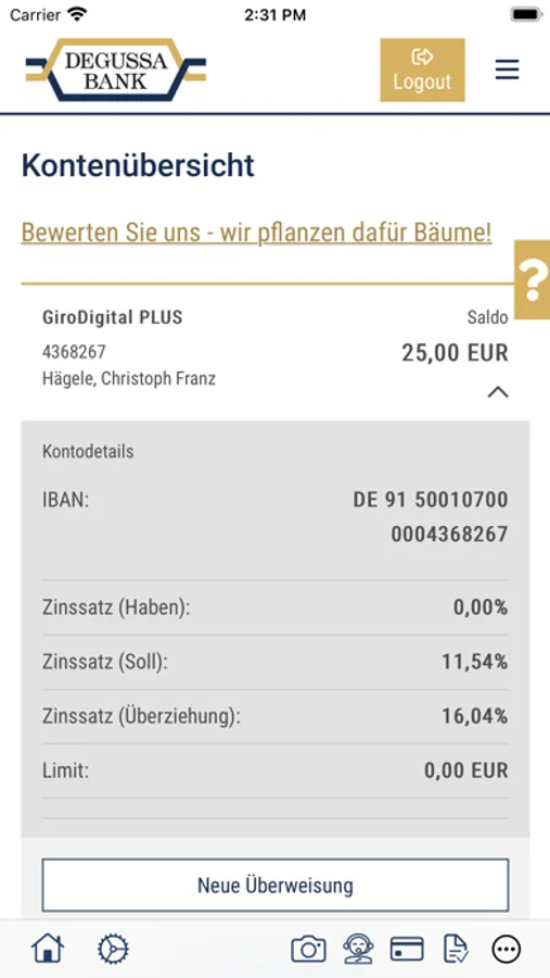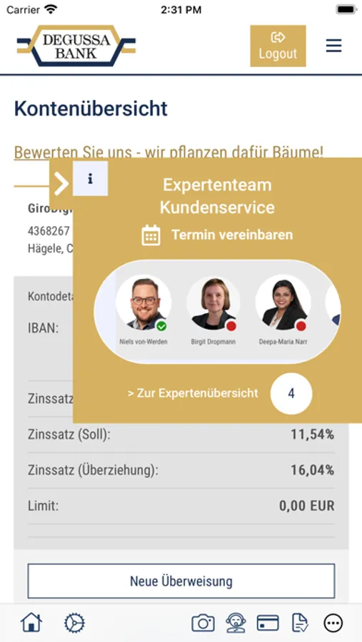 Sie haben eine tolle Idee für unsere Banking-App? Oder eine Frage? Dann nutzen Sie einfach die Feedback-Funktion in der App oder schreiben Sie eine E-Mail an: ebanking@degussa-bank.de