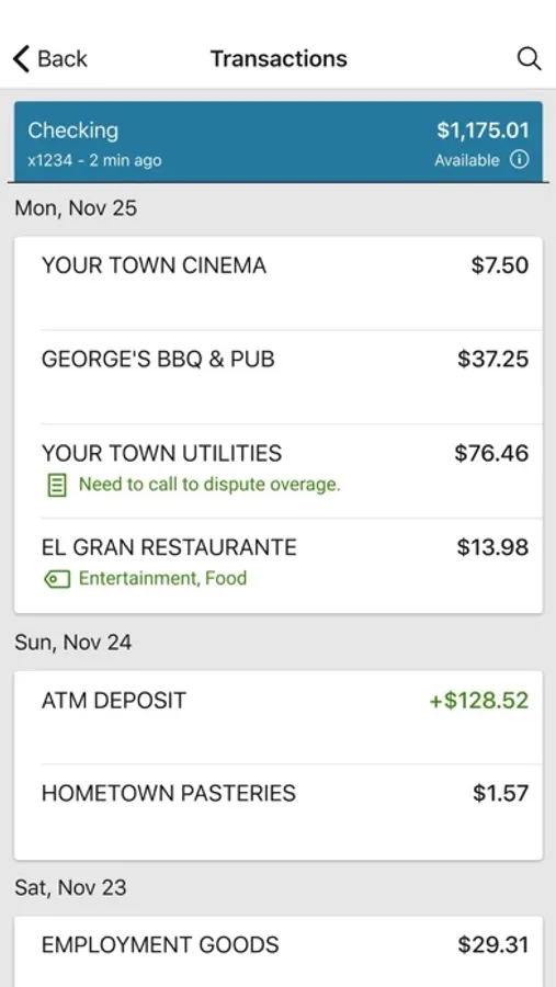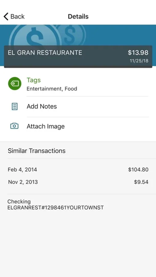 Add Tags, Notes, Images & Geo-Information: By enhancing transactions with custom tags, notes or photos of a receipt or check, you have the ability to stay organized and find exactly what you’re looking for when searching through your finances.