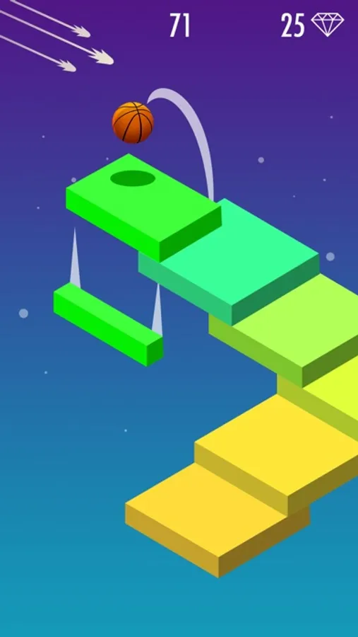 Any miss and the stairs shrink, making it harder to make the next jump. But nail a combo of perfect bounces, and the stairs grow back again!