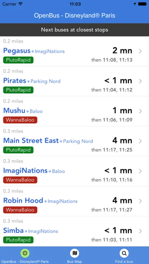 This application shows real time bus time tables for the bus lines around the EuroDisney resort in Marne-La-Vallée, France.