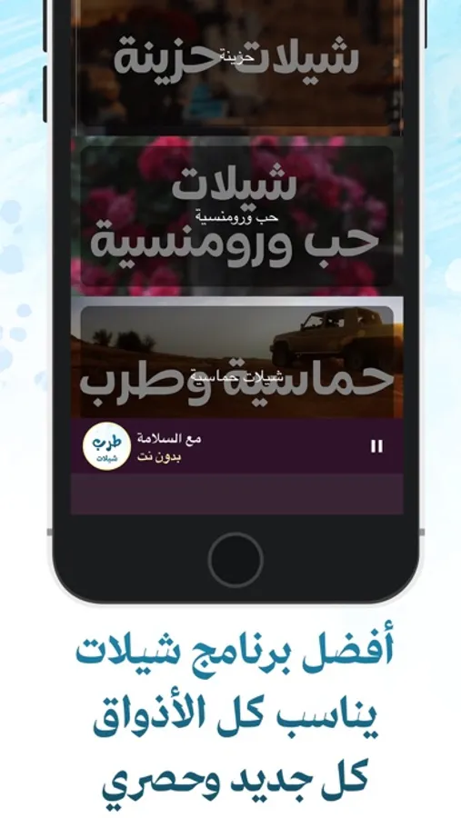 تجد في التطبيق جميع الاذواق شيلات حماسية طرب غزلية مسرعة وطنية حب بدون ايقاع