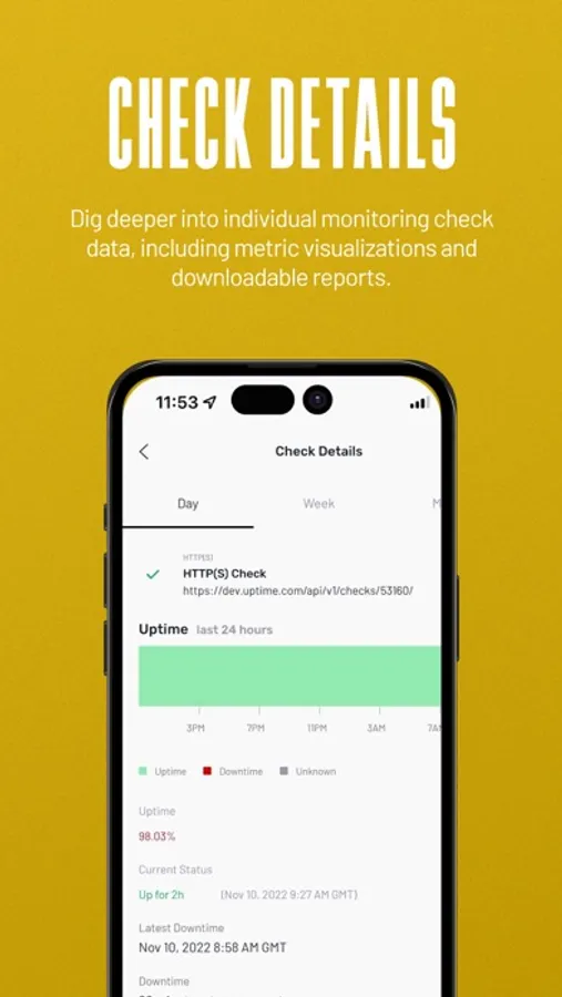Detailed Reports - Uptime and Response time reports. Get daily, weekly, or monthly reports.