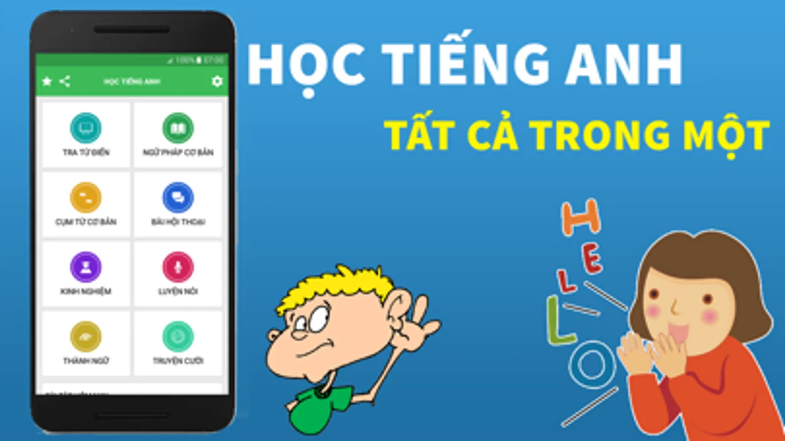 Ứng dụng học tiếng anh miễn phí, không cần kết nối dữ liệu bạn vẫn có thể học được tiếng anh mọi lúc mọi nơi. Ứng dụng tổng hợp toàn bộ những hành trang cần có để bạn có thể học được tiếng anh một cách tốt nhât.