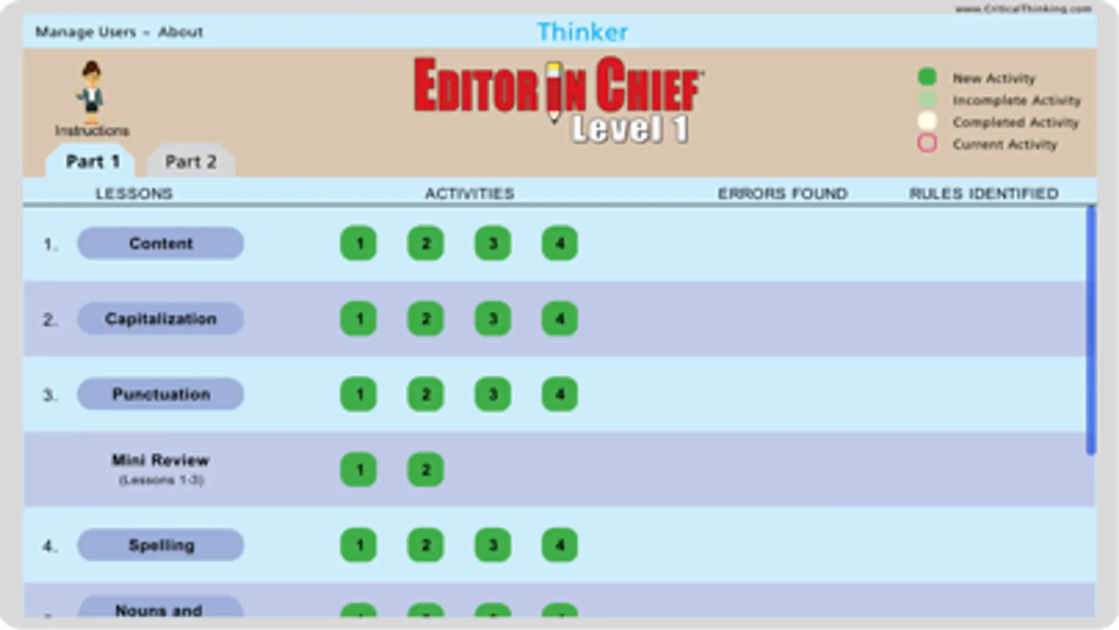 Editor in Chief® Level 1 includes lessons and practice with the following concepts: