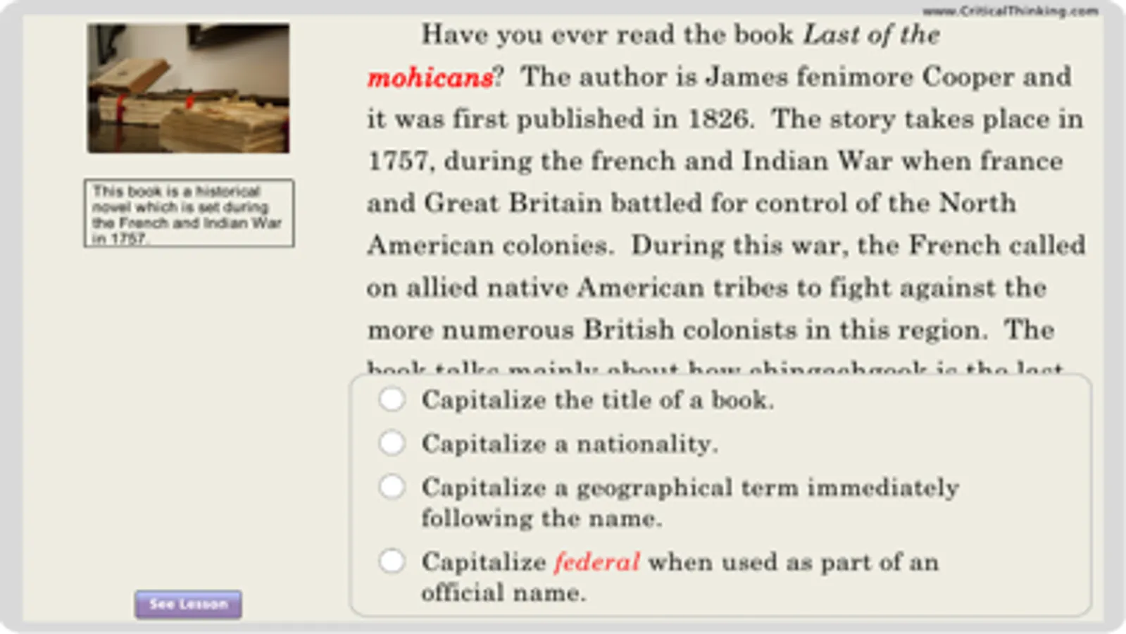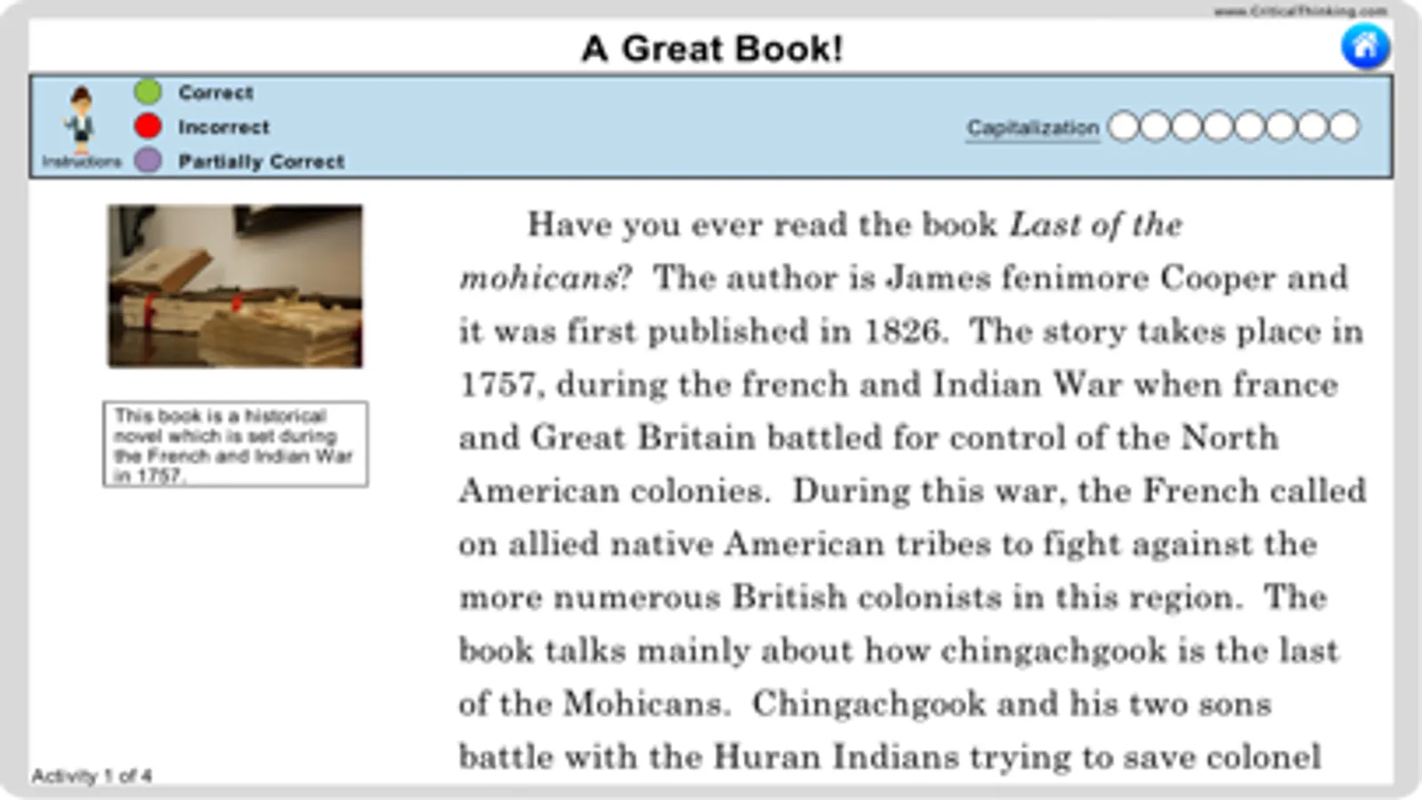 This fun, highly-effective educational app teaches students in Grades 4-5 grammar, punctuation, spelling, capitalization, and critical reading in a standards-based thinking approach instead of the usual drill and practice found in competing products. Students begin with an easy-to-understand lesson followed by an activity that require students to carefully analyze and edit stories, letters, or articles that contain mechanical errors. This effective method allows students to gain mastery over concepts that will translate into their own writing.
