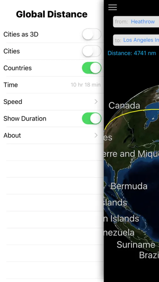 This is an app to quickly measure the great circle distance between two points or airports around the globe.