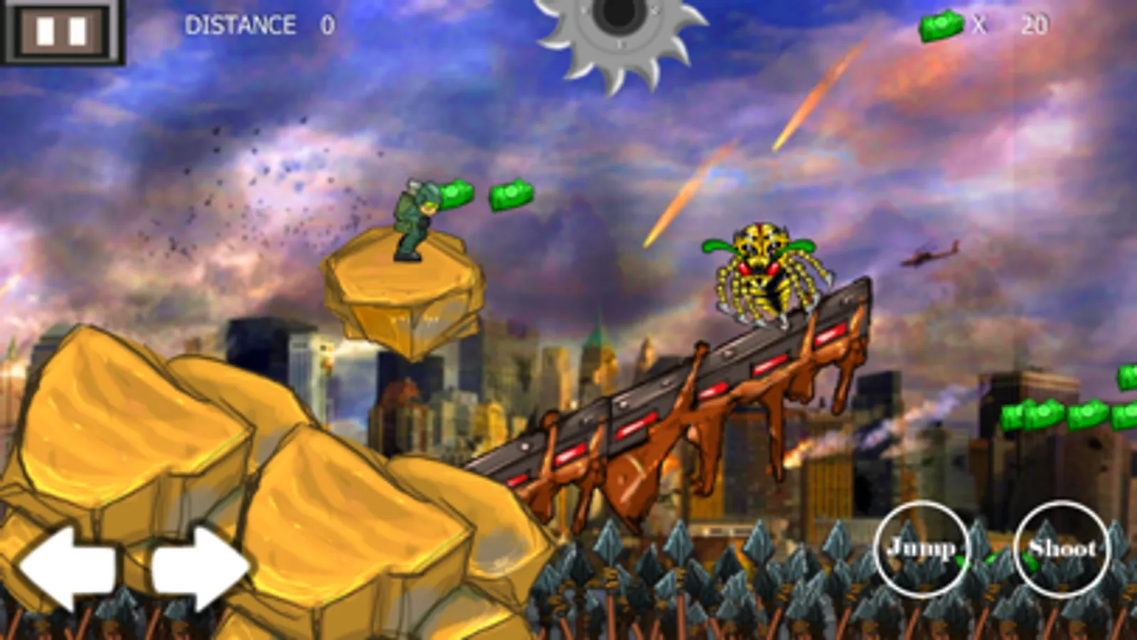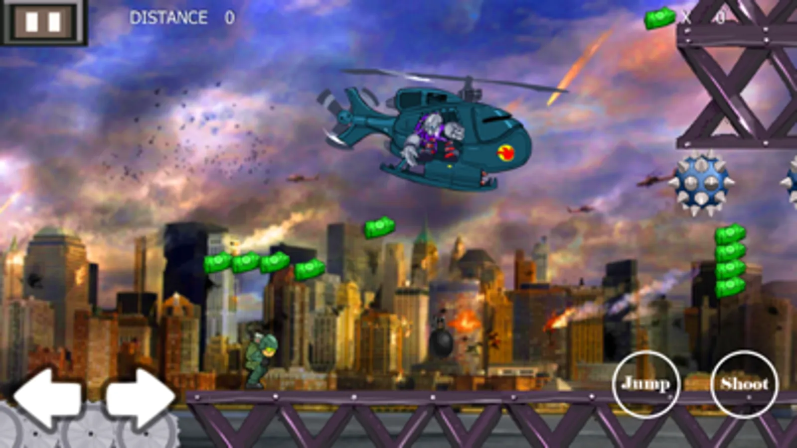 This game is simple endless war adventure shooting game in frontline to fight with enemy such as helicopter, tank and more.How long your can survival.
