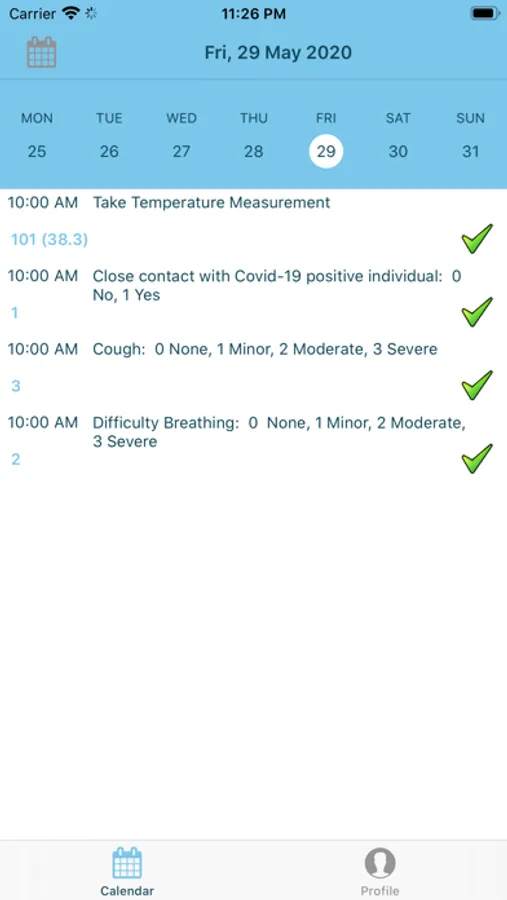 InterveneRx app allows registered users of our program to view their daily calendar on scheduled activities relating to home care.