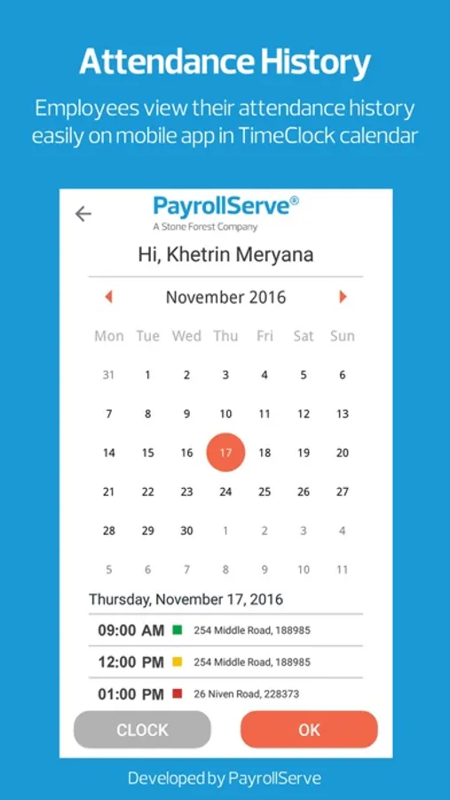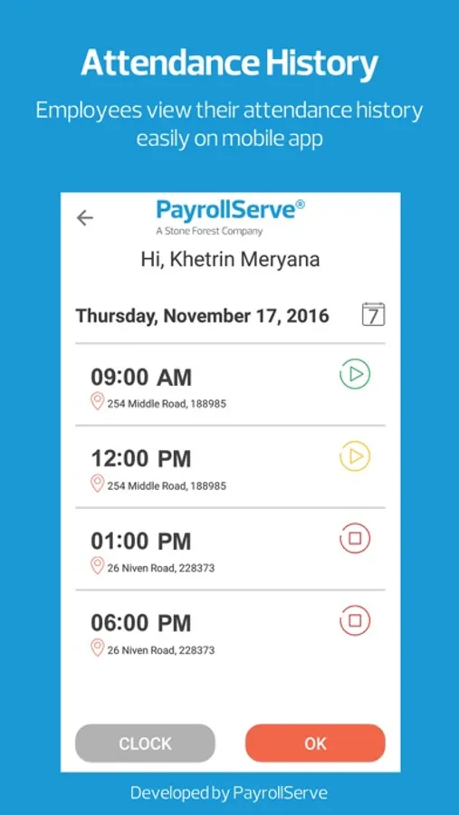 PayDay! TimeClock is a time tracking app (time management system) developed by PayrollServe. The app is designed to help all businesses manage employee attendance easily anytime from anywhere, enhance productivity and stay in control.