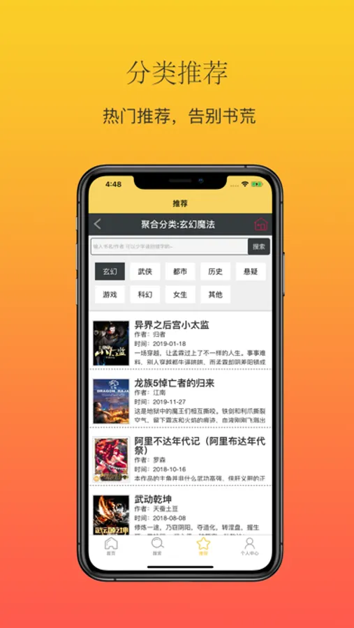 全面的小说类型:玄幻、都市、言情、武侠、修仙、科幻、军事、职场励志,应有尽有;