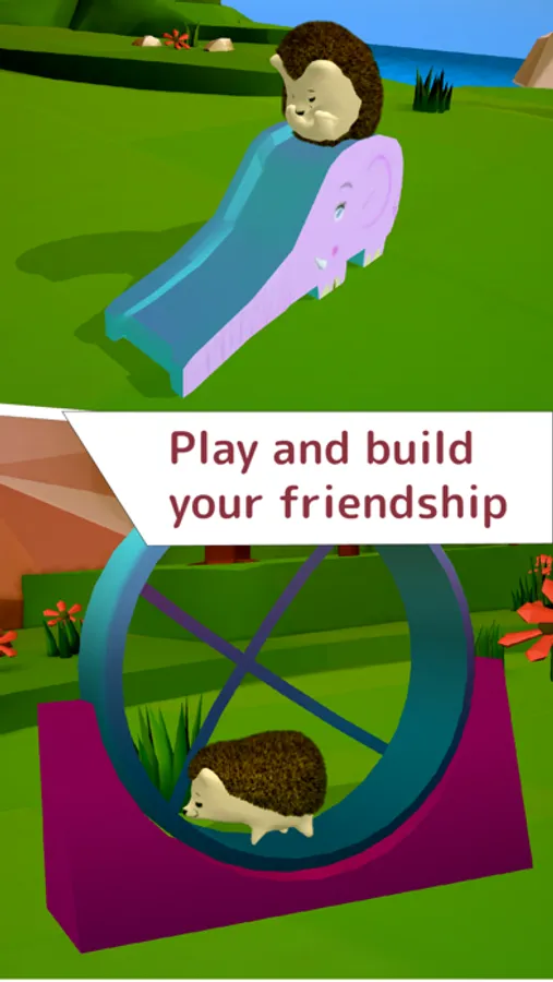 Watch this dynamic little creature play on the slide, trampoline, swing and many other facilities on the island. The more you play, the more he’ll begin to like you too. You can even give your hedgehog a name and dress it up with items and cute clothing.