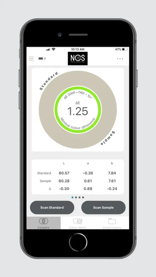 Download the new free NCS Colourpin app and start pinning colours already today! For every colour you pin, you get colour information in the form of the closest NCS notation, translated into CMYK, RGB, L*a*b* and lightness values.