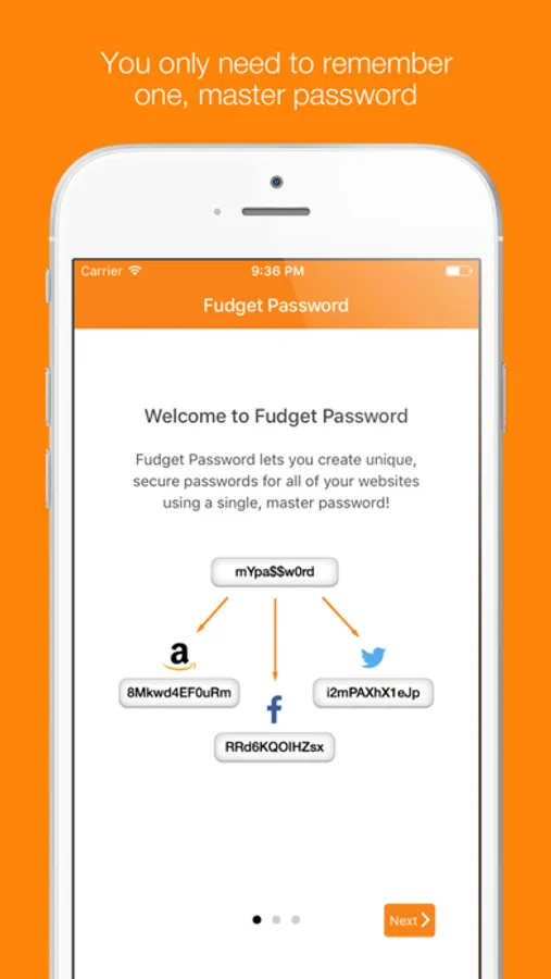 Fudget Password creates secure passwords for all your accounts – and you only need to remember one password.