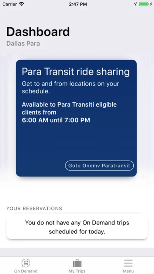 The MV Passenger App allows passengers to book and manage on-demand trips and view vehicle assignments and locations in real-time.