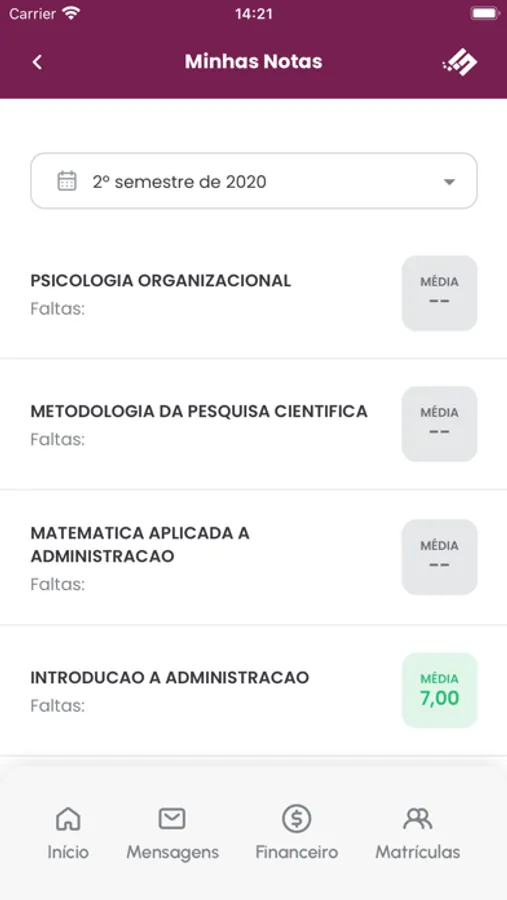 - Visualizar suas notas, parciais e finais, de cada disciplina