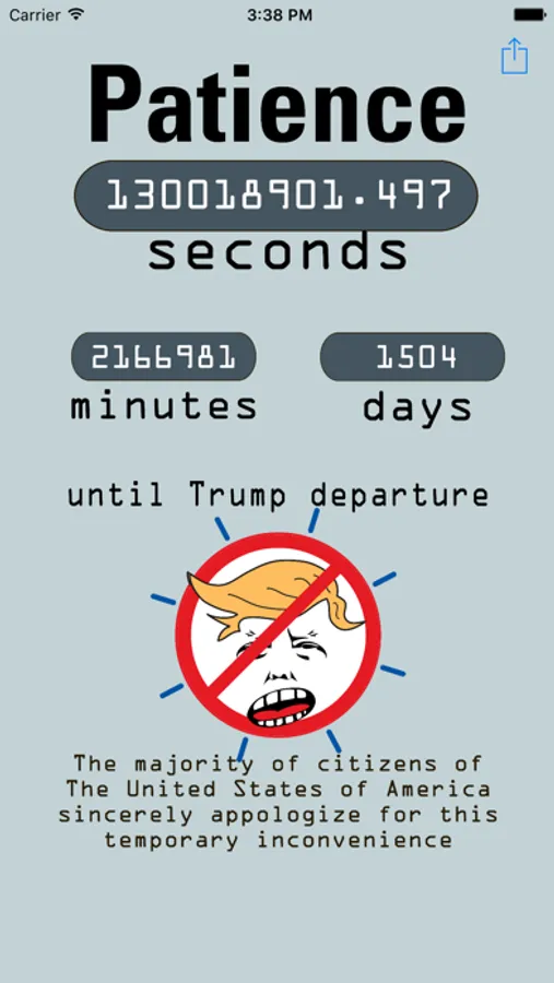 TrumpDown will accurately tell you, down to the millisecond, just how long you have to wait until the next President will be sworn into office. Amaze your friends with its accuracy and soothe yourself knowing time does fly and all we need is a little PATIENCE.