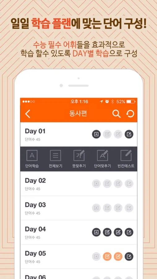1.DAY별 학습 : 수능 필수 어휘들을 효과적으로 학습 할 수 있도록 DAY별 학습으로 구성