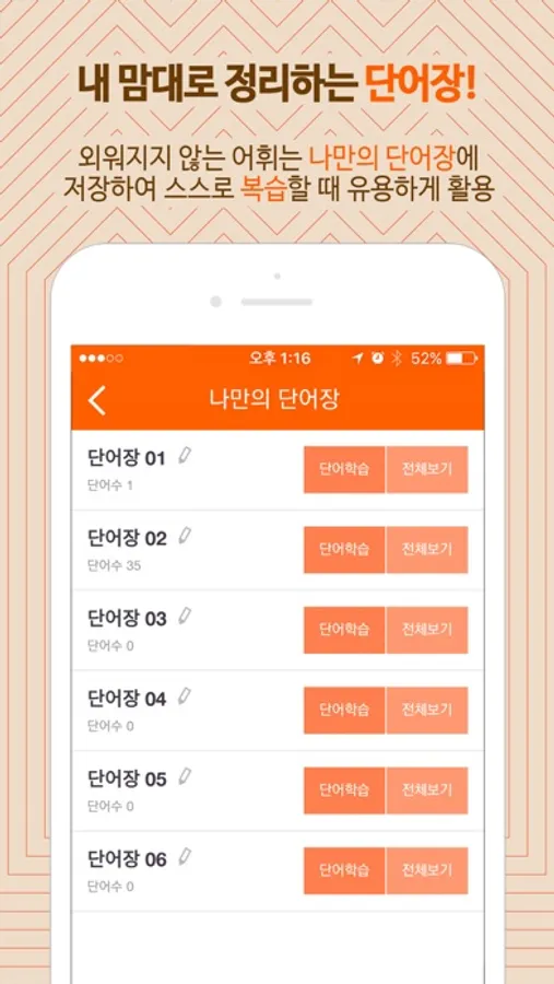 영어단어를 나만의 단어장으로 만들어 학습 가능