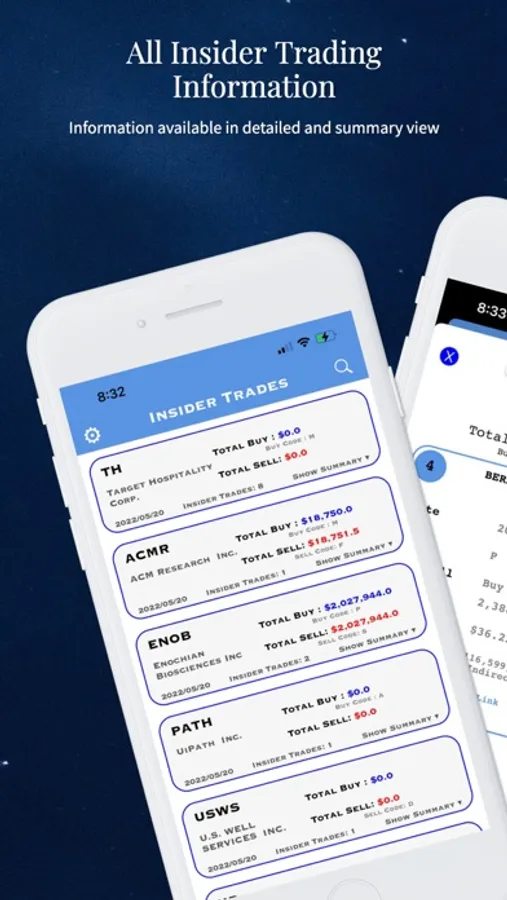 - Realtime information for all insider trades, Institutional filings, 8-K filed with SEC.