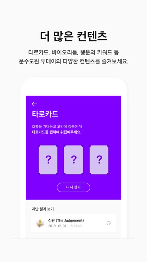 행운의 아이템, 바이오 리듬, 국내/외 역사적 사건을 제공합니다.
