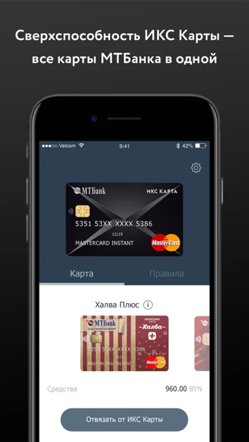 ИКС Карта — мобильное приложение и пластиковая карточка, которые объединили функционал лучших карт МТБанка (MasterCard). Настройте приложение ИКС Карта и платите одной карточкой, используя преимущества всех. Рассрочка Халвы, кэшбэк Автокарты и PayOkay, бонусы Халвы Плюс.