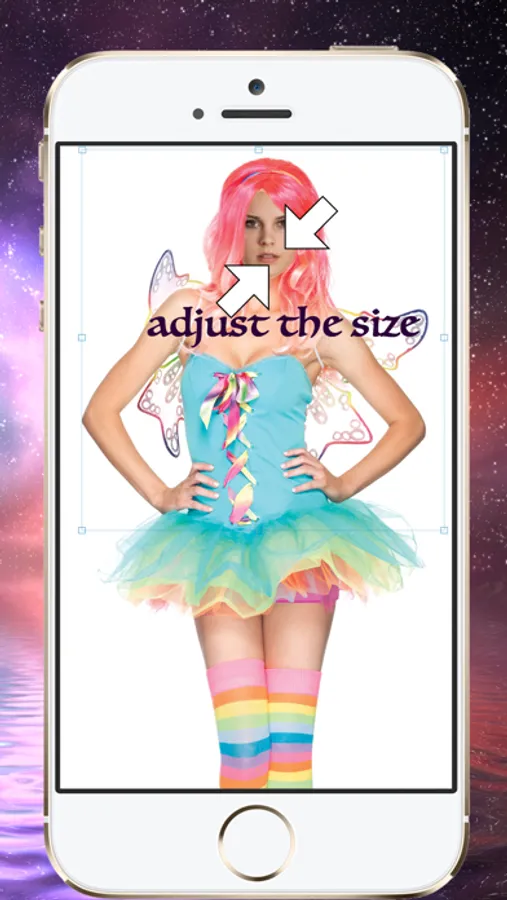 Share your lovely fairy costumes photo to your family and friends with our photo montage app.