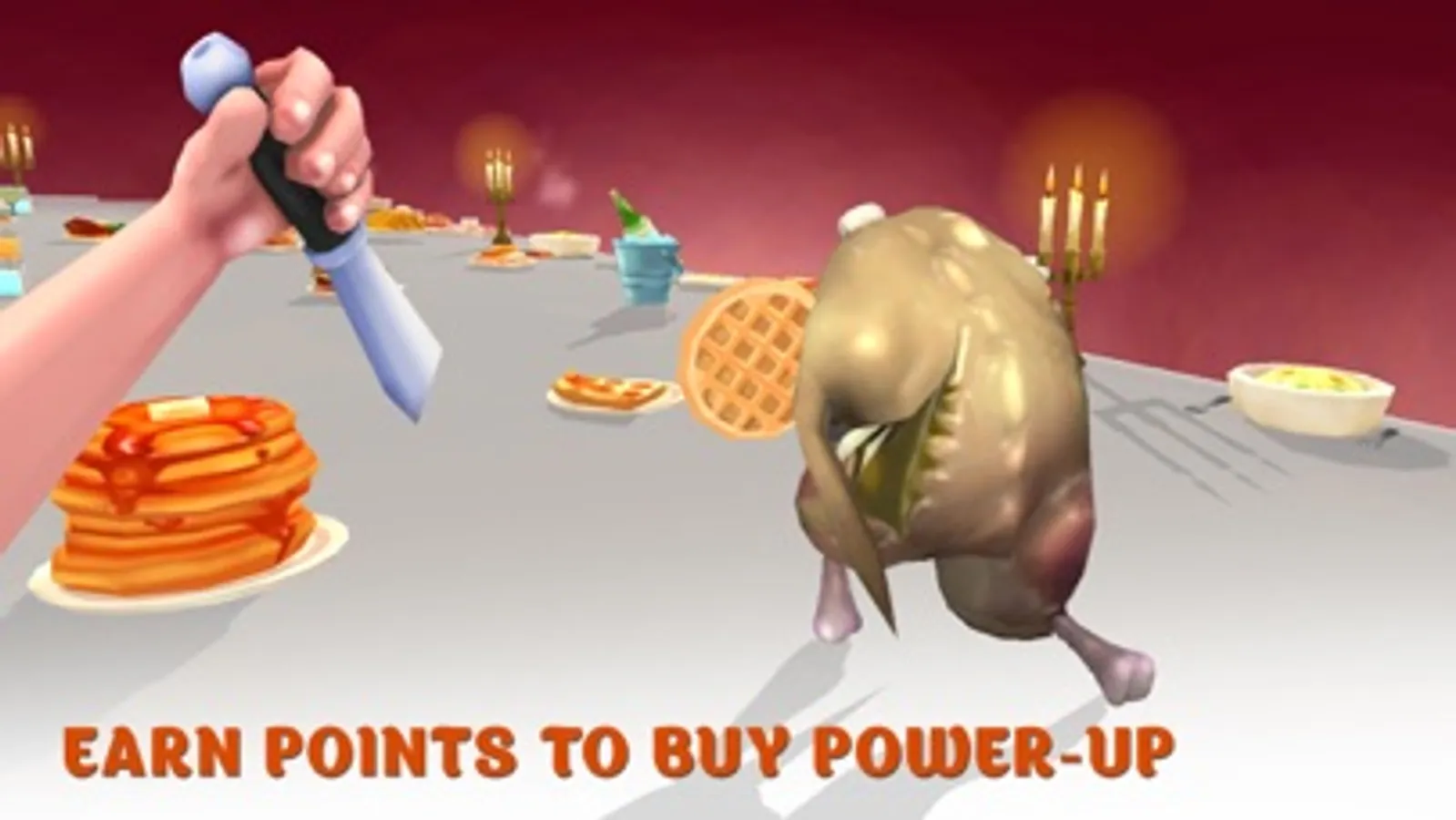 Be careful – the household is full of dangers and obstacles! Avoid knives and forks! Unlock different power-ups to boost your turkey or to ease your task – transparency, for example, would let your run right through the walls ignoring them! Use all your skill reflexes to help the Thanksgiving turkey runaway from the kitchen by jumping, sliding and avoiding obstacles! Earn points to try different turkeys – zombie turkeys, cyber-turkey, and others!
