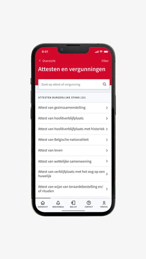 Alle functionaliteiten van de algemene app Mijn Burgerprofiel van de Vlaamse overheid zijn ook terug te vinden in de versie van Merchtem.