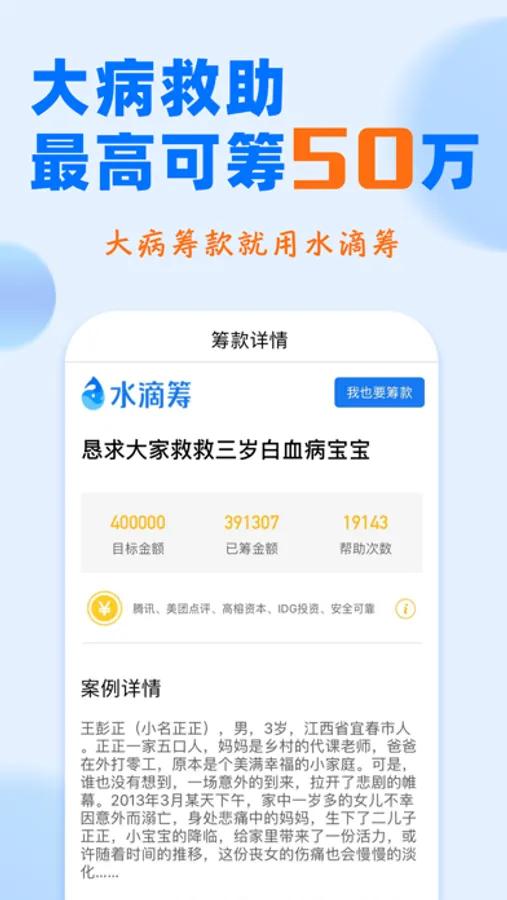 汇聚爱心人士的点滴赠与,国内知名的大病筹款平台