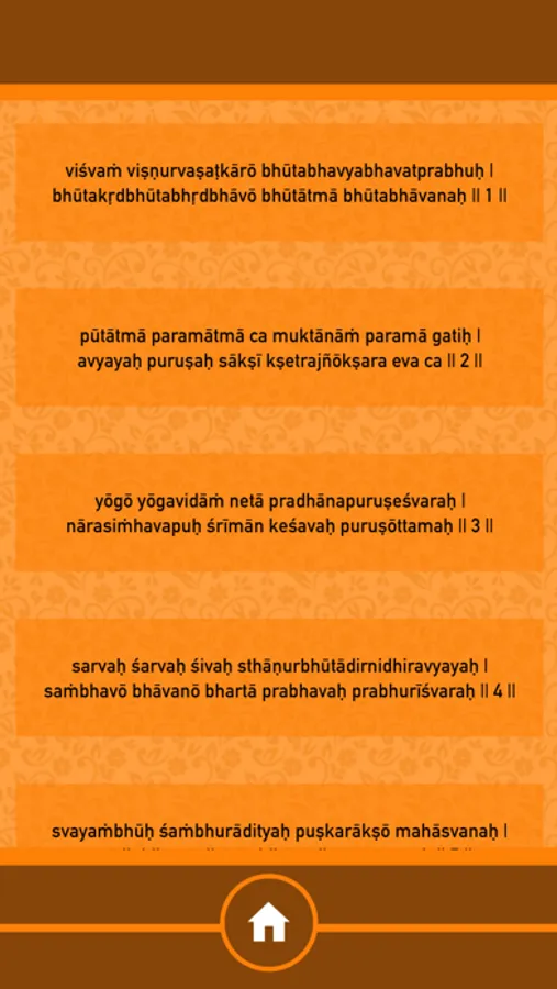 Sri Vishnu sahasranamam Stotram contains 1000 Holy names. It is also one of the most sacred and commonly chanted stotras in Hinduism. It is the remedy for the suffering of materially conditioned existence.