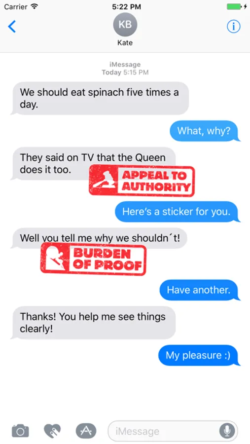 Bad Arguments is a sticker pack for Messages that provides instant joy of correcting your friends and family in their flawed reasoning.