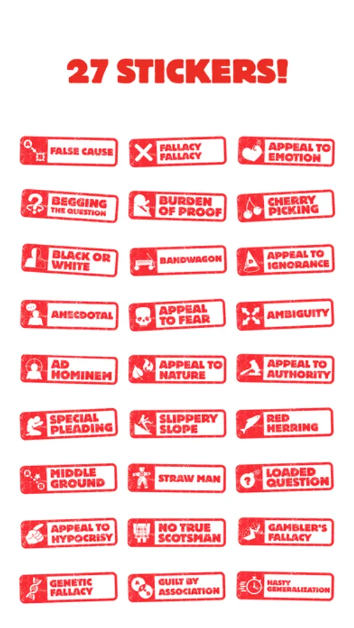We have hand-picked 27 common logical fallacies to aid you in making the world of argumentation a better place - one stamp at a time!