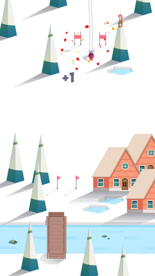 Ready to hit the slopes? Ski down beautiful mountain slopes, but be careful not to hit the cabins, campfires, or the dreaded Yeti!