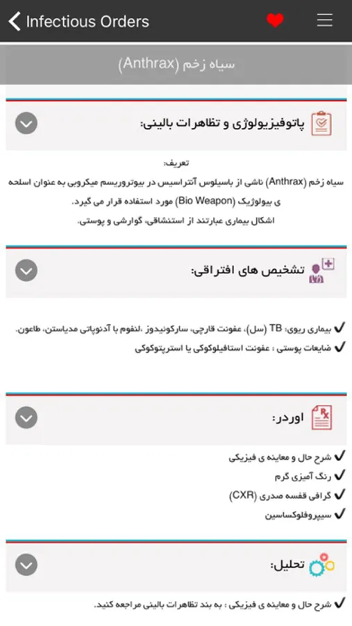 اپلیکیشن اوردرهای عفونی شامل مجموعه از بیماری های عفونی به همراه اطلاعات و اوردر های لازم برای دانشجویان پزشکی می باشد