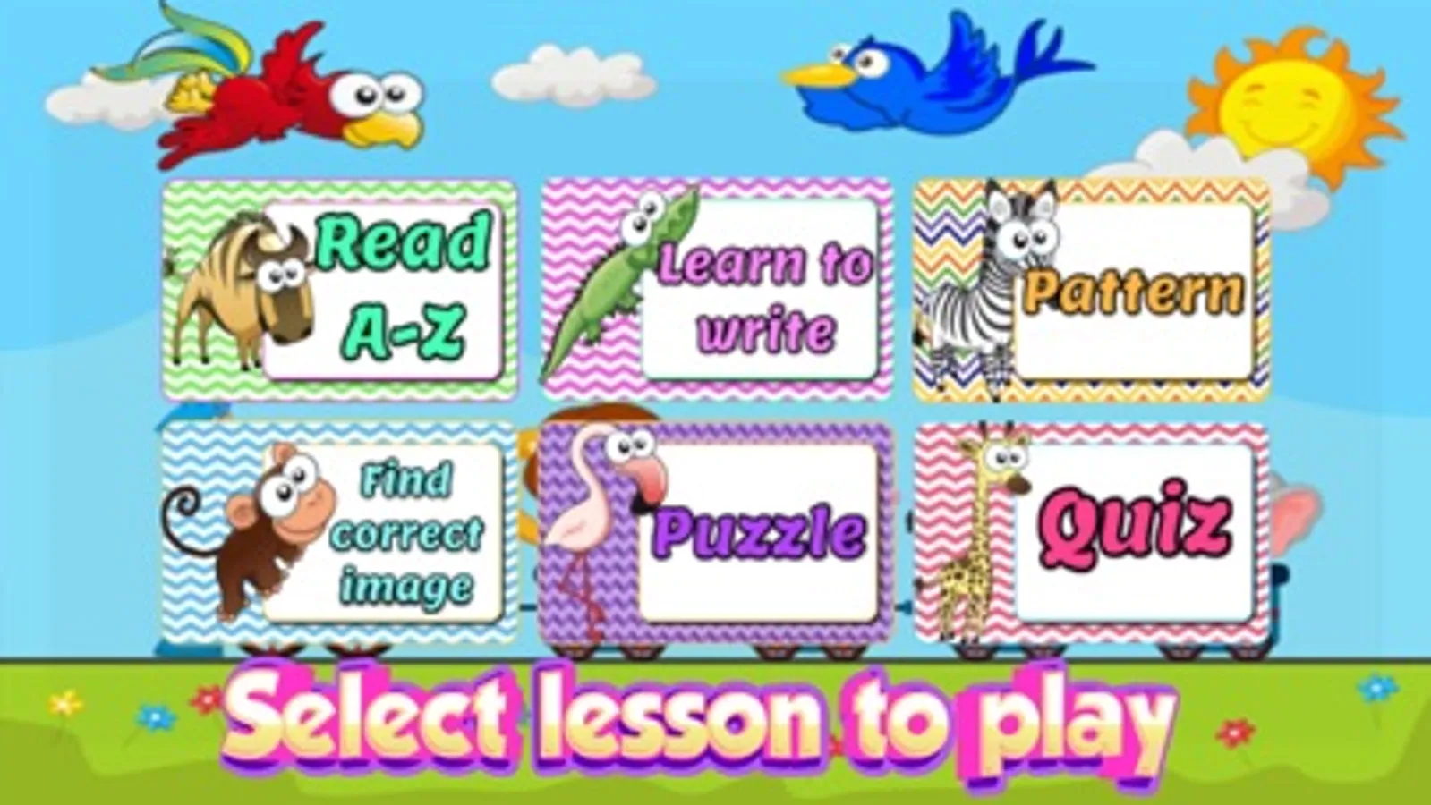 * Find the Correct Image - Kids are asked to choose which item among 3 items that its first letter is the same as the given letter. As for example, given letter A, and there are 3 items: apple, bunglon, and banana. If kids click the “Apple” item, it will be correct, otherwise it will be wrong!