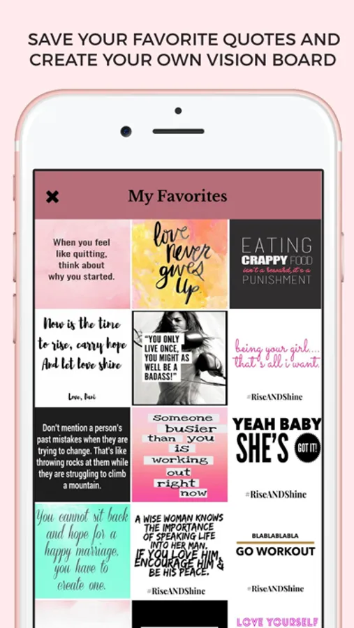 • Save your favorites and build your own personal Vision Board of good words and images