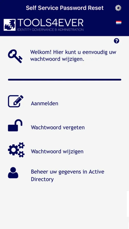 The SSRPM app can be used app to easily connect to your company's SSRPM solution and perform actions such as enrolling, resetting or changing your password, and updating your Active Directory information.