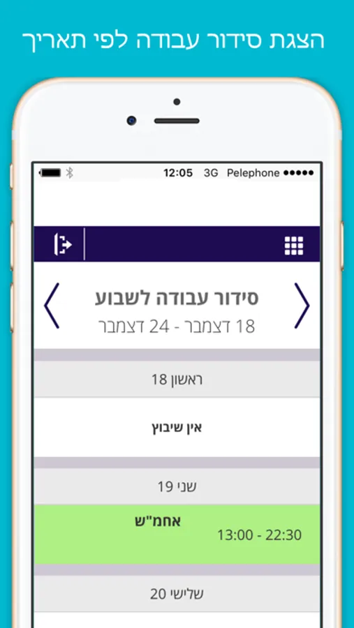 האפליקציה מאפשרת צפייה בסידור עבודה כפי שנקבע ותוכנן במערכת השיבוץ.