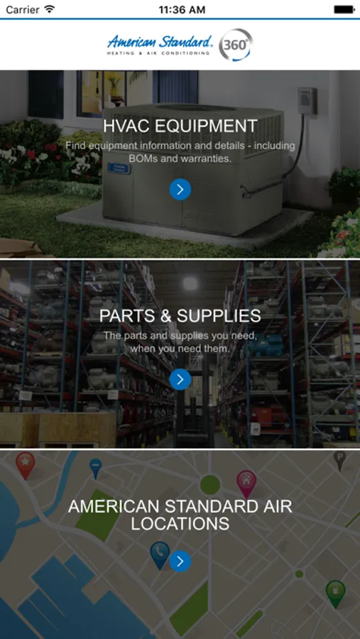 Enjoy the convenience of using American Standard Air 360° on your phone or tablet to look up details or research information, whenever and wherever you do business. American Standard Air 360° can be used by contractors, office administration and sales support to maximize efficiency and productivity. Consider the American Standard Air 360° app your toolbox for easy access to equipment and part information.