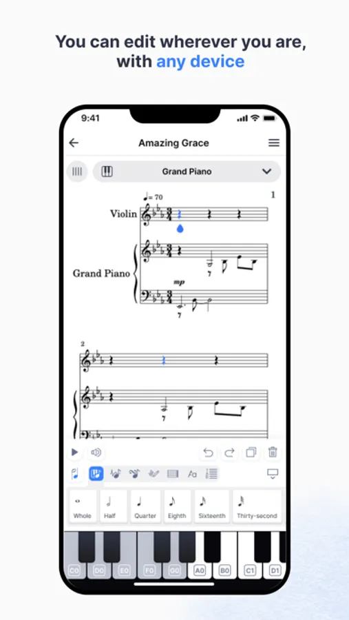 • Your music notation editor in your pocket with a clean and intuitive interface.